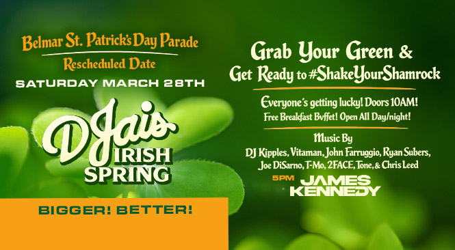 D'Jais 1801 Ocean Ave, Belmar, NJ, United States1PM Music Starts w/ Dj Joe Disarno Come 2 Hrs Earlier! Beat The line! Get stamped too! Happy Hour til 8PM W/ DJ’s DJ Joe Giorgio Kipples & DJ Finesse At Night 9PM Bonsolid’s Mix DJ Johnny Budz Along w 2FACE